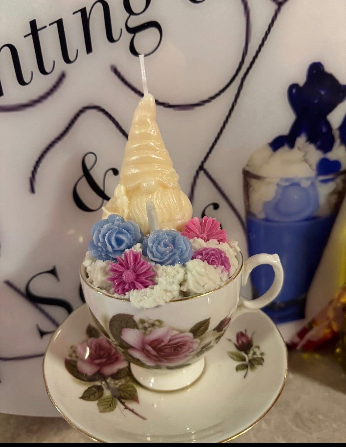 Step into a world of charm and wonder with our Garden Gnome Teacup Candles — where magic blooms in every cup. Each candle is lovingly hand-poured into a vintage floral teacup and topped with a delightful wax gnome surrounded by colorful wax blossoms.